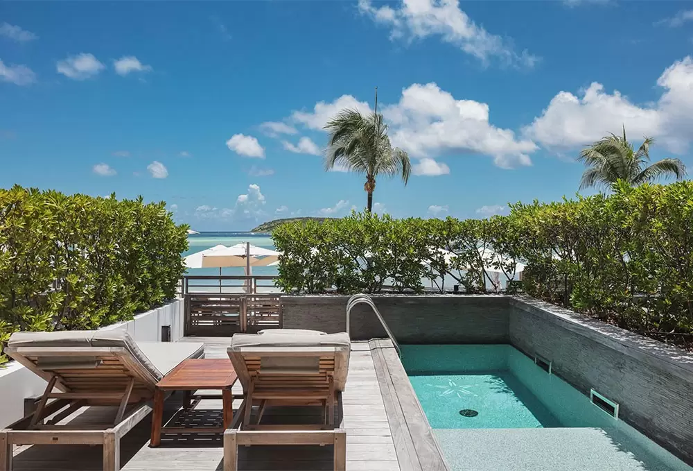 Replenish your body and soul at Le Barthélemy Hotel & Spa in St Barts, from your own private enclave with a sprawling patio and heated plunge pool. Comfortably slumber away on a king-sized bed in the Ocean Lux Piscine Privée Junior Suite.