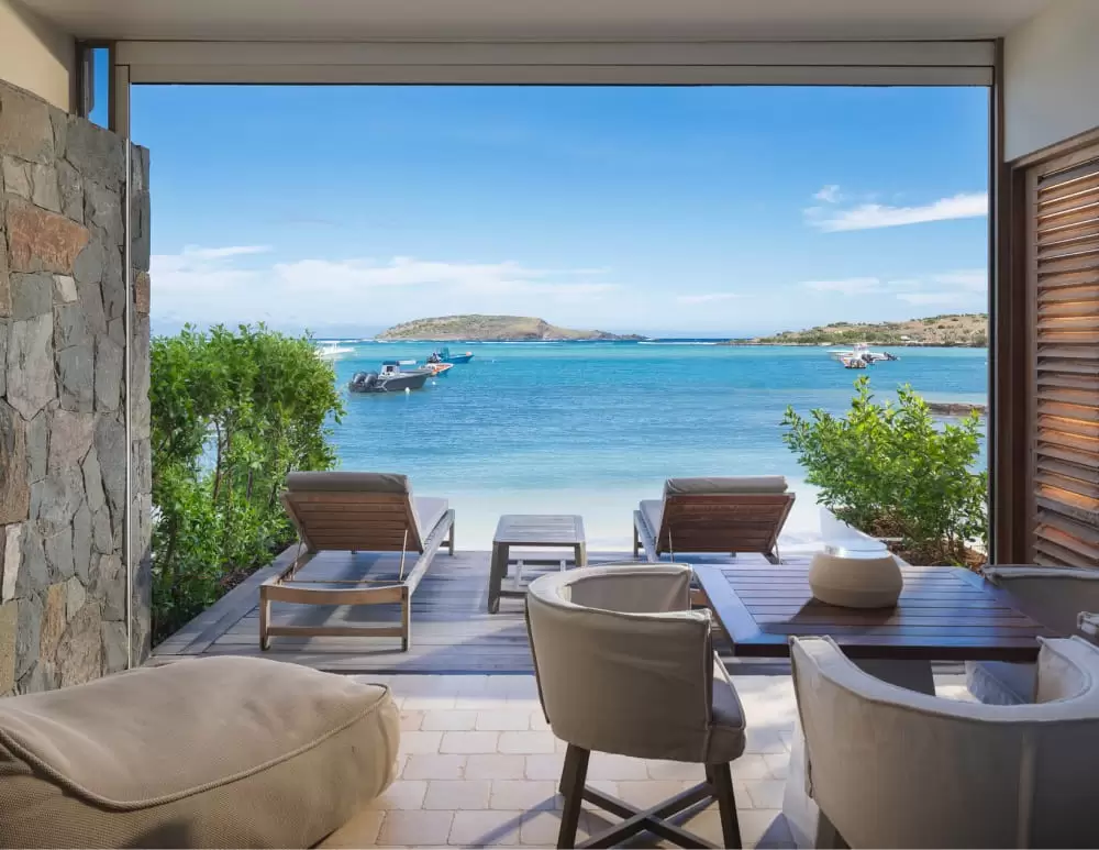 The dreamy La Suite Barthélemy Plage offers a luxurious yet comfy space and an iconic view of the most beautiful bay of St. Barts, with direct access to the beach – ideal for couples, friends or families, looking for a private holiday by the sea; this suite features a large master bedroom and two guest rooms, each with en-suite, lavish bathrooms, and spacious private terraces. This luxury Suite is available on a 1, 2 or 3-bedroom basis.
