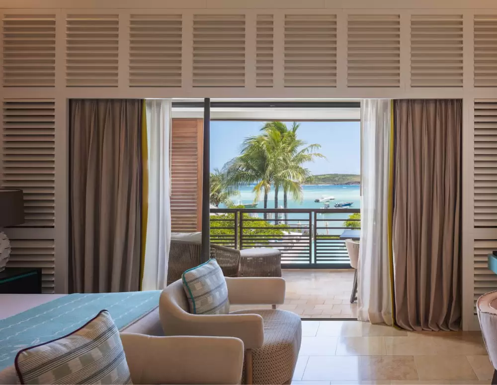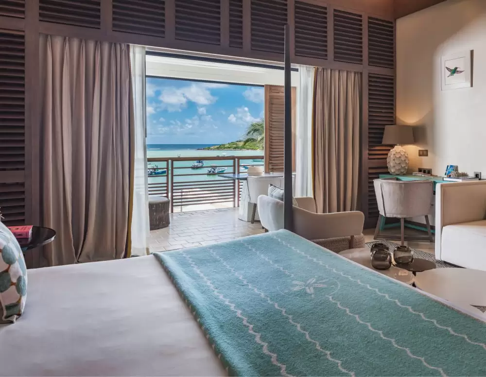 With a breathtaking view of the Grand Cul-de-Sac Bay and delightful spaces carefully designed to fit all your favorite people, La Suite Barthélemy is the ideal accommodation for a holiday well-spent by the beach. The balcony overlooks the sparkling blue waters of the Caribbean, and the king-size bed is just as comfy as it sounds.